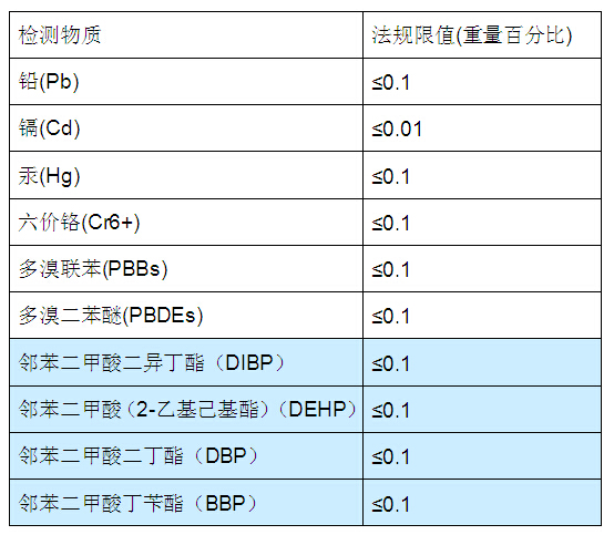 除醫(yī)療和監(jiān)控設備,2019年7月22日起所有輸歐電子電器產(chǎn)品均需符合ROHS10項限制要求。